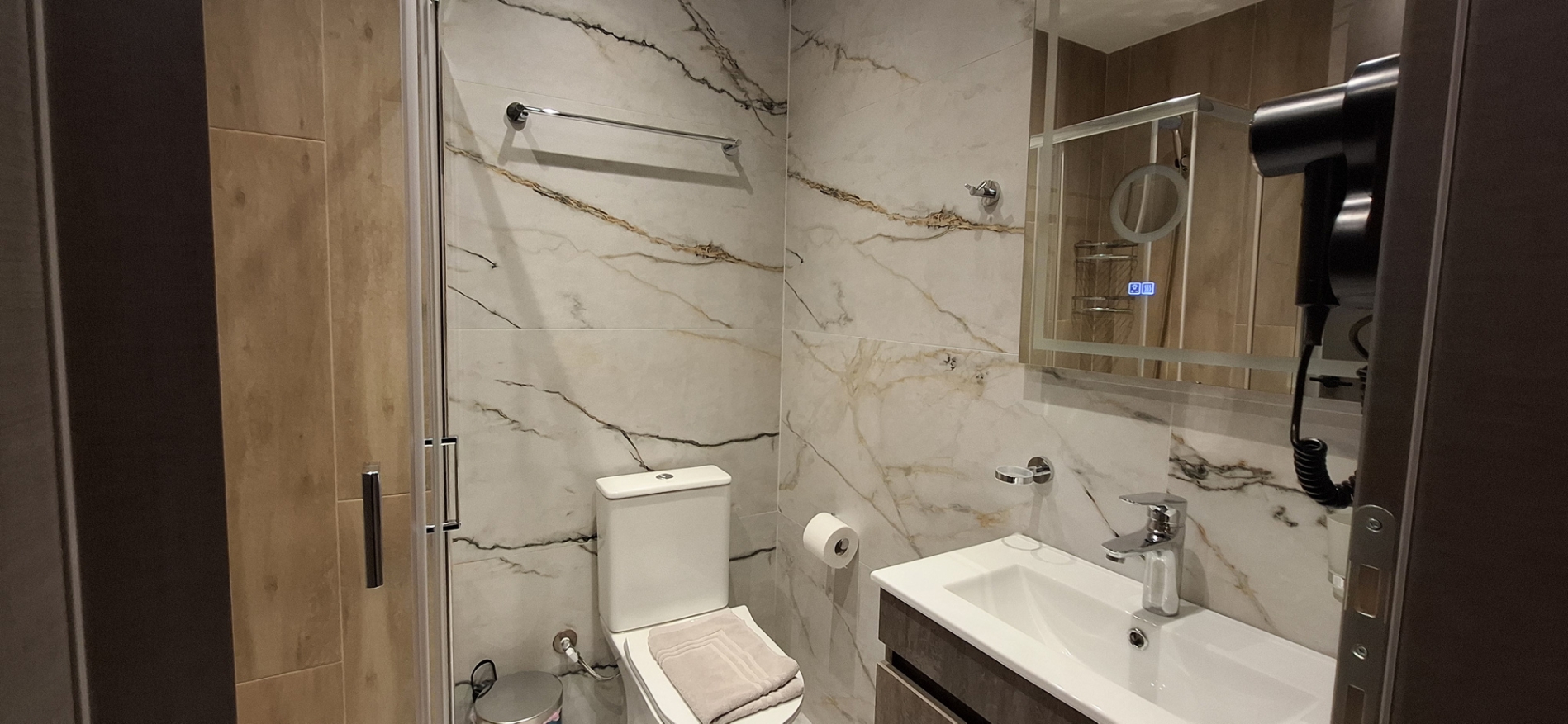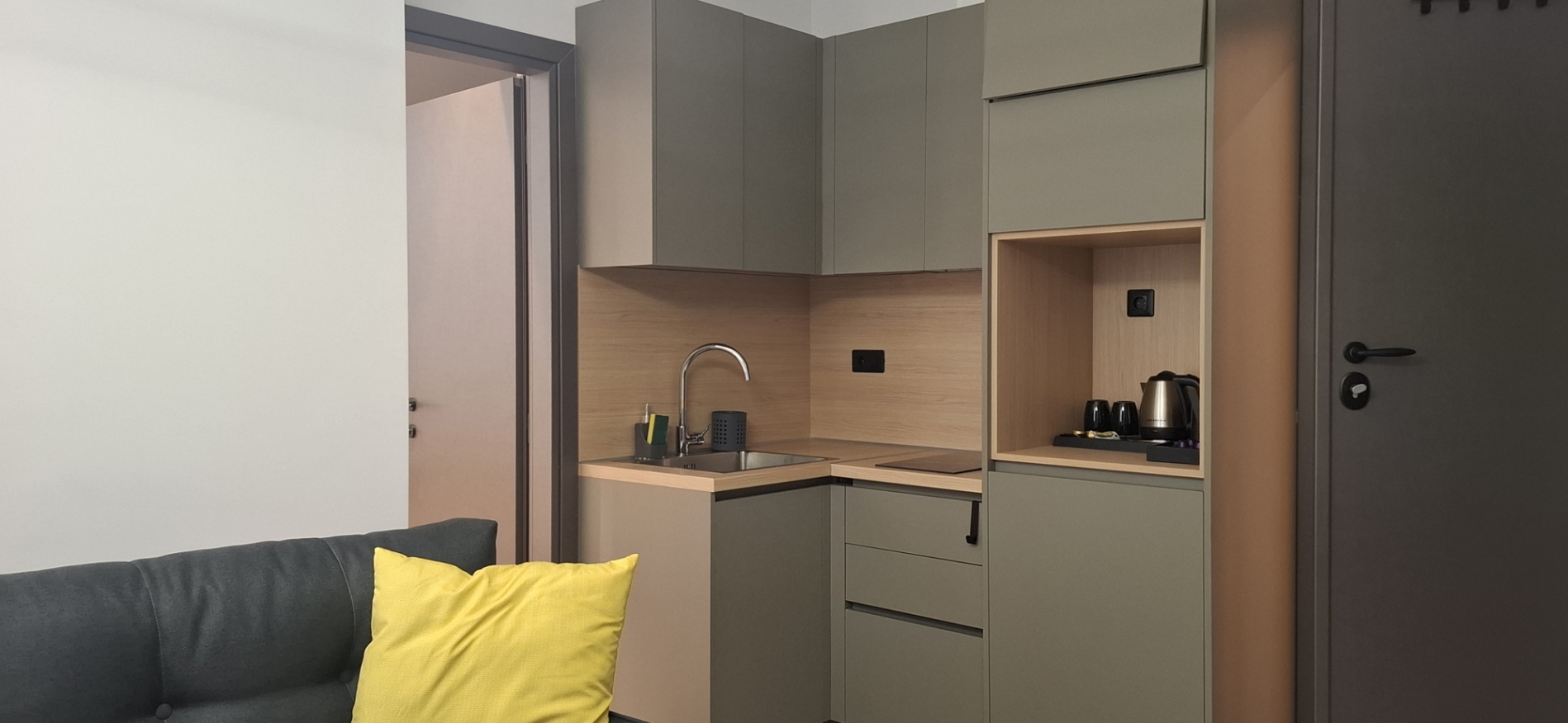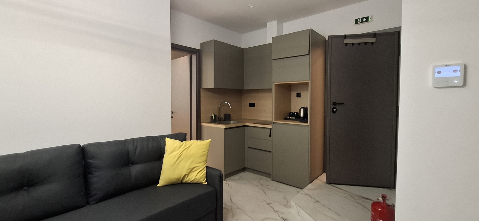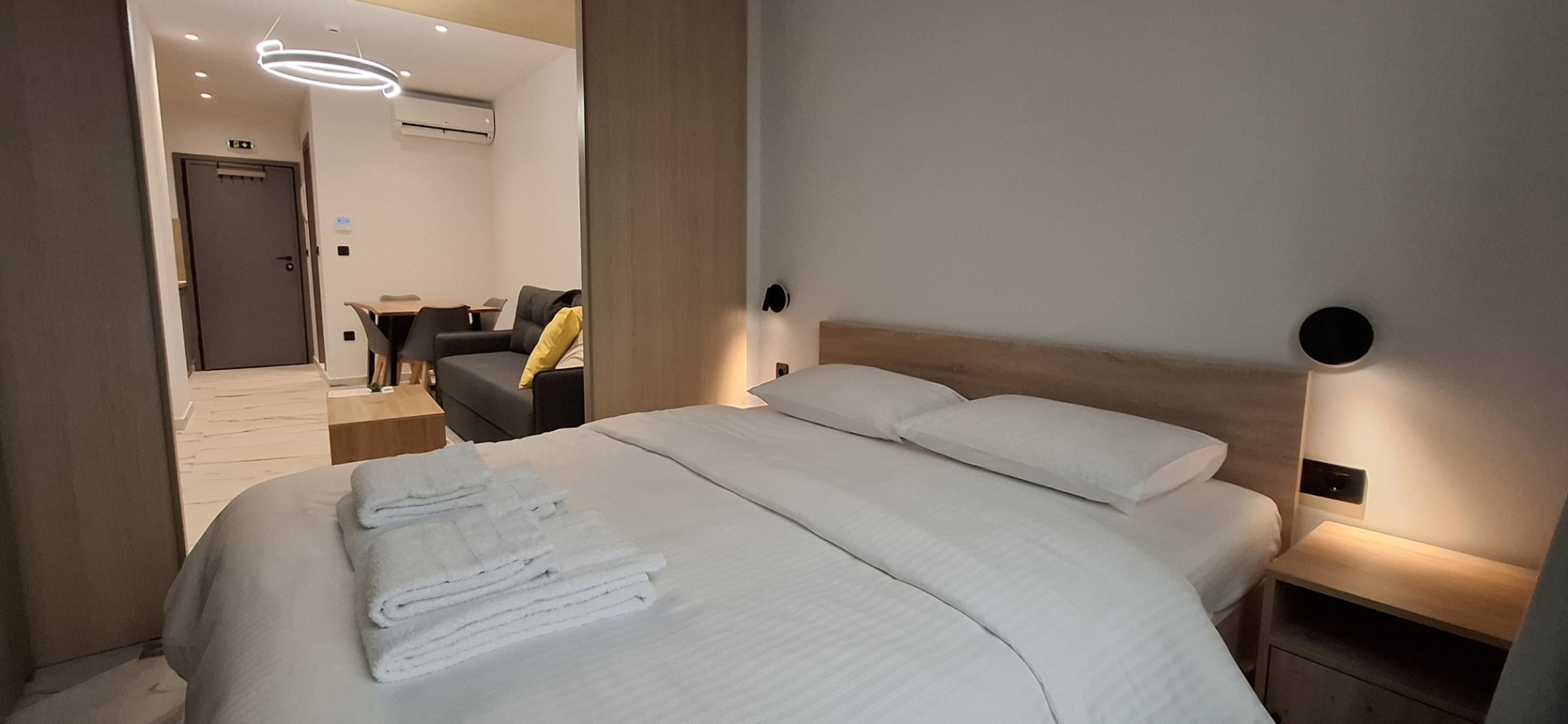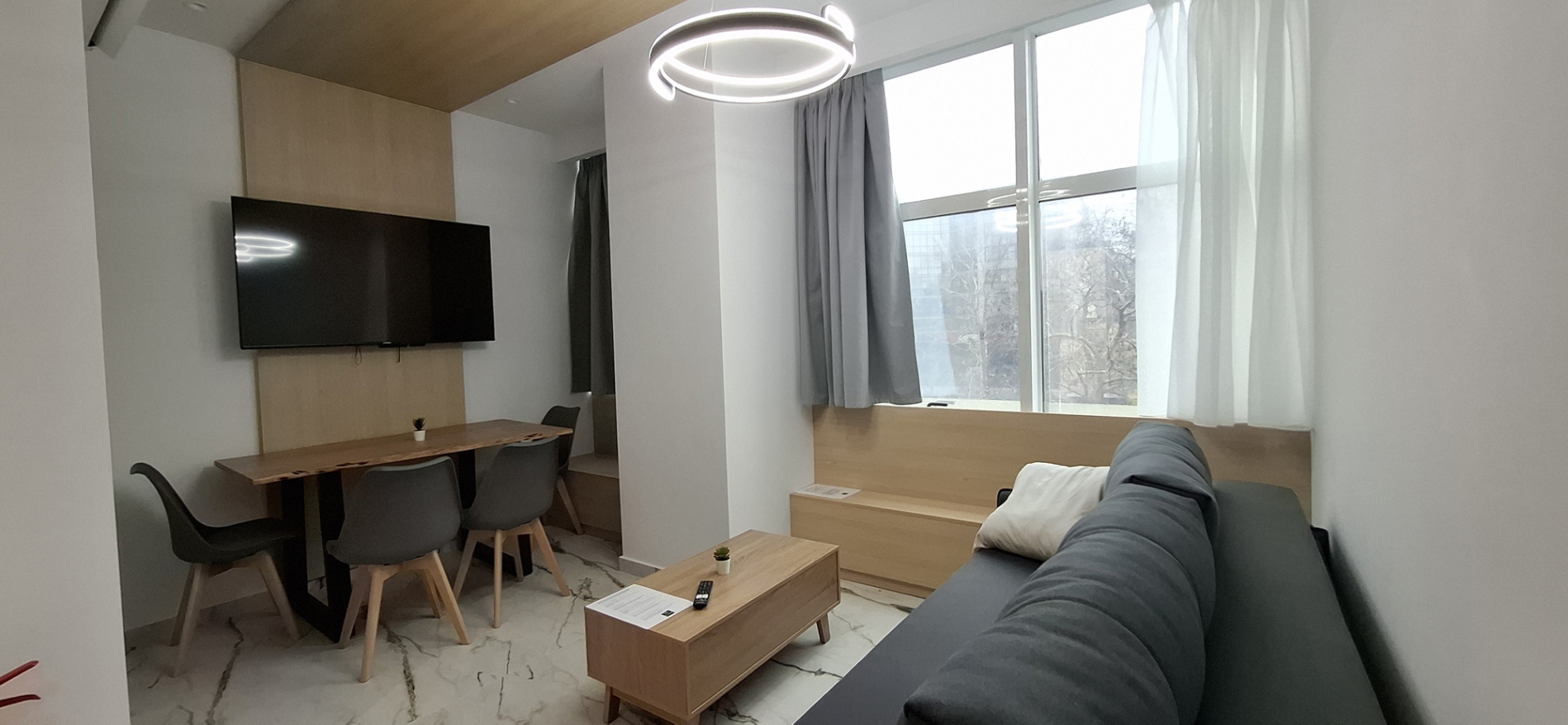 Ideal for families, couples, or friends, these comfortable apartments can accommodate up to 4 guests. They feature one bedroom with a double bed and a spacious sofa in the living room that easily converts into a double bed, offering both practicality and comfort. The modern design, bright spaces, and carefully curated décor create a welcoming atmosphere for relaxation after a full day in the city. A fully equipped kitchen and modern amenities - including high-speed Wi-Fi, air conditioning, and a smart TV - ensure a pleasant and restful stay. The central location provides easy access to major attractions, restaurants, and public transportation. Living area: ca. 36sqm