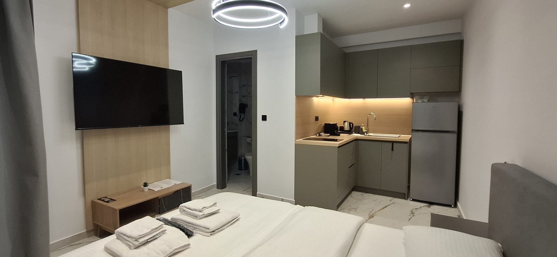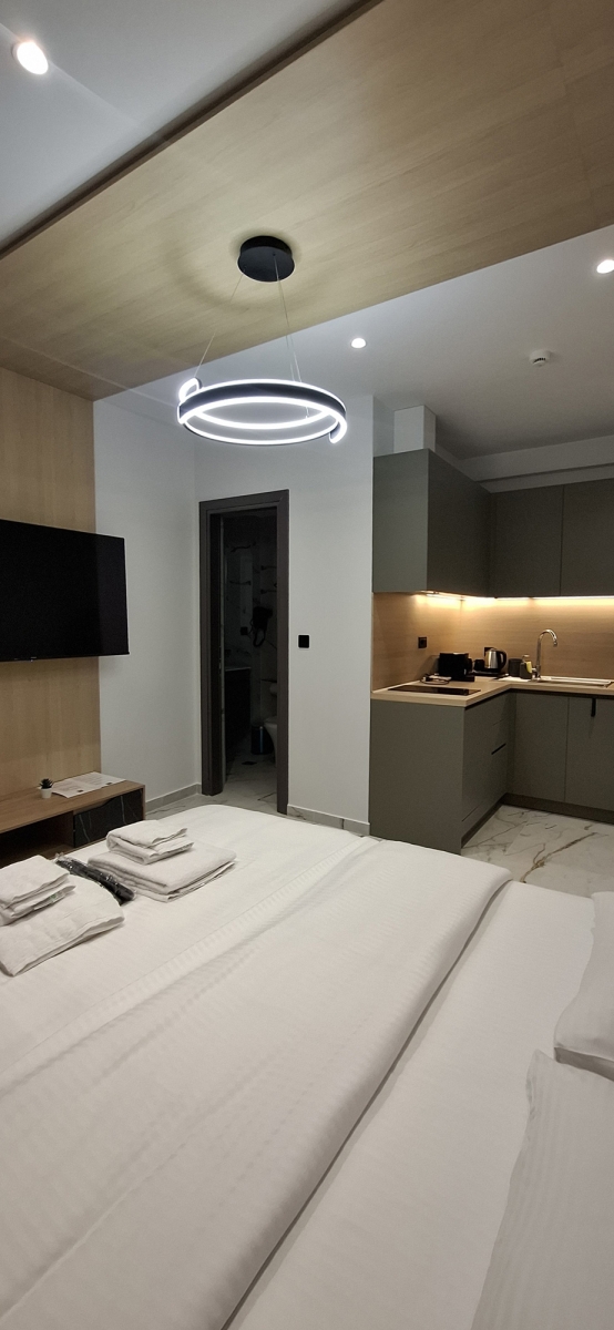 Perfect for couples or two guests, our single traveler offers a stylish and comfortable stay in the heart of the city. With contemporary design, neutral tones, and plenty of natural light, the space creates the ideal atmosphere for relaxation and rest. The studios feature a cozy double bed, a bathroom with shower, and a fully equipped kitchen. Equipped with high-speed Wi-Fi, air conditioning, a smart TV, and all essential amenities, you'll have everything you need for a pleasant and convenient stay. Enjoy the comfort of a private studio overlooking the inner courtyard with the warmth of a thoughtfully designed space — just steps away from the city’s best attractions.