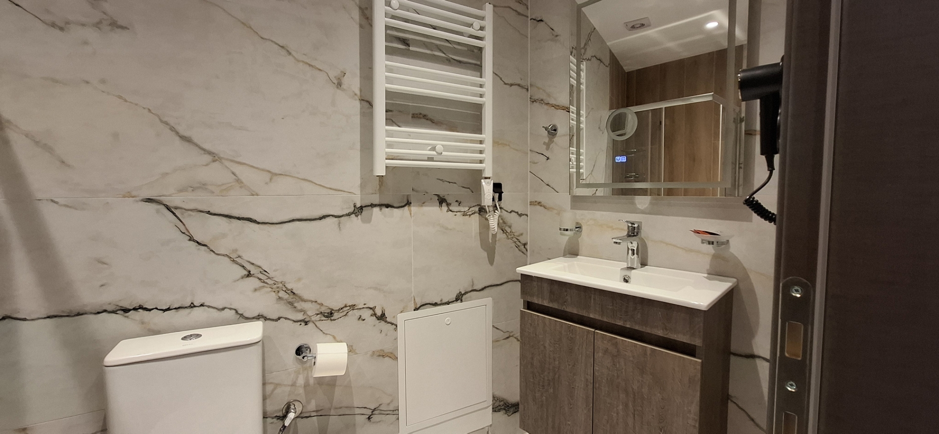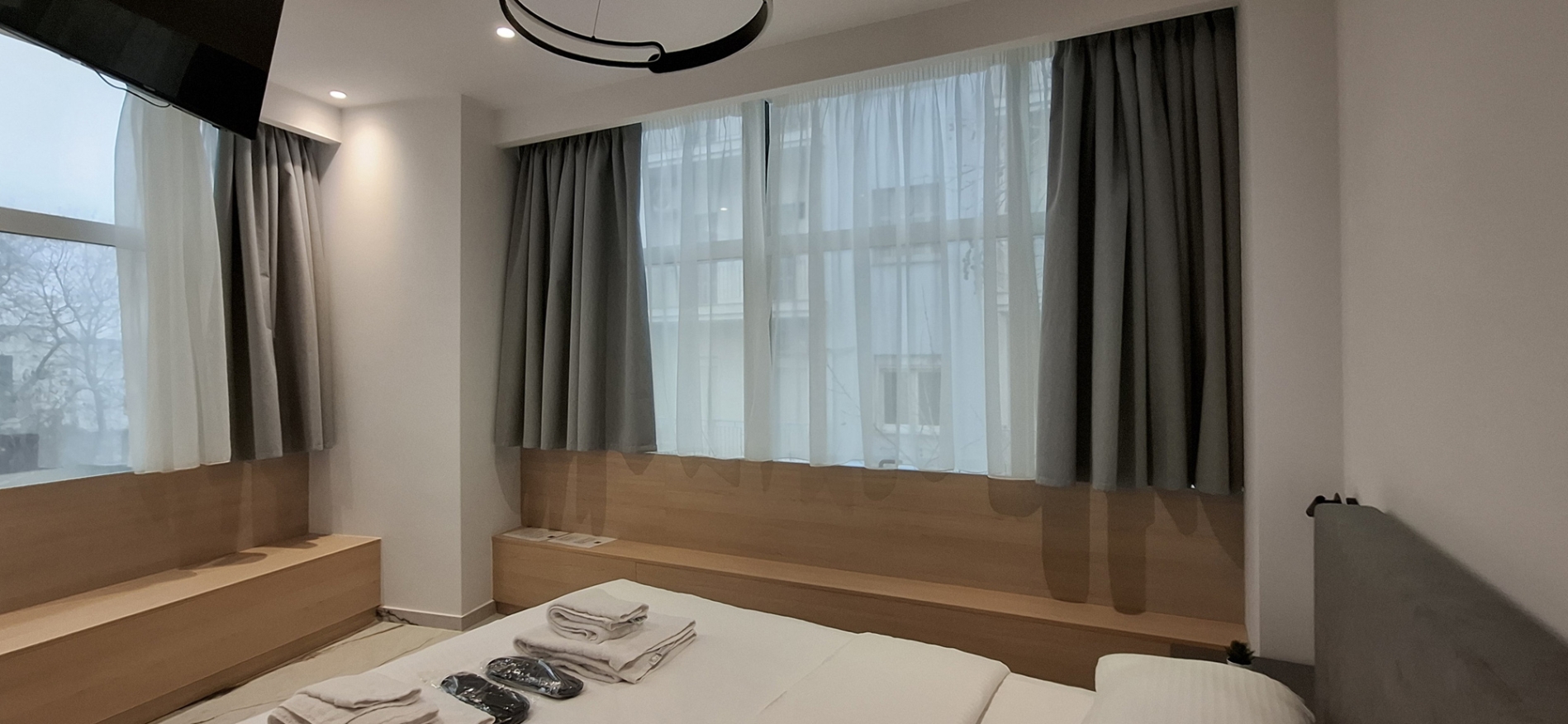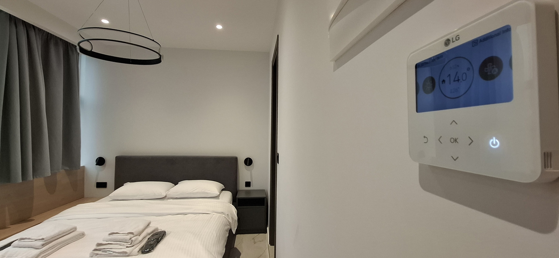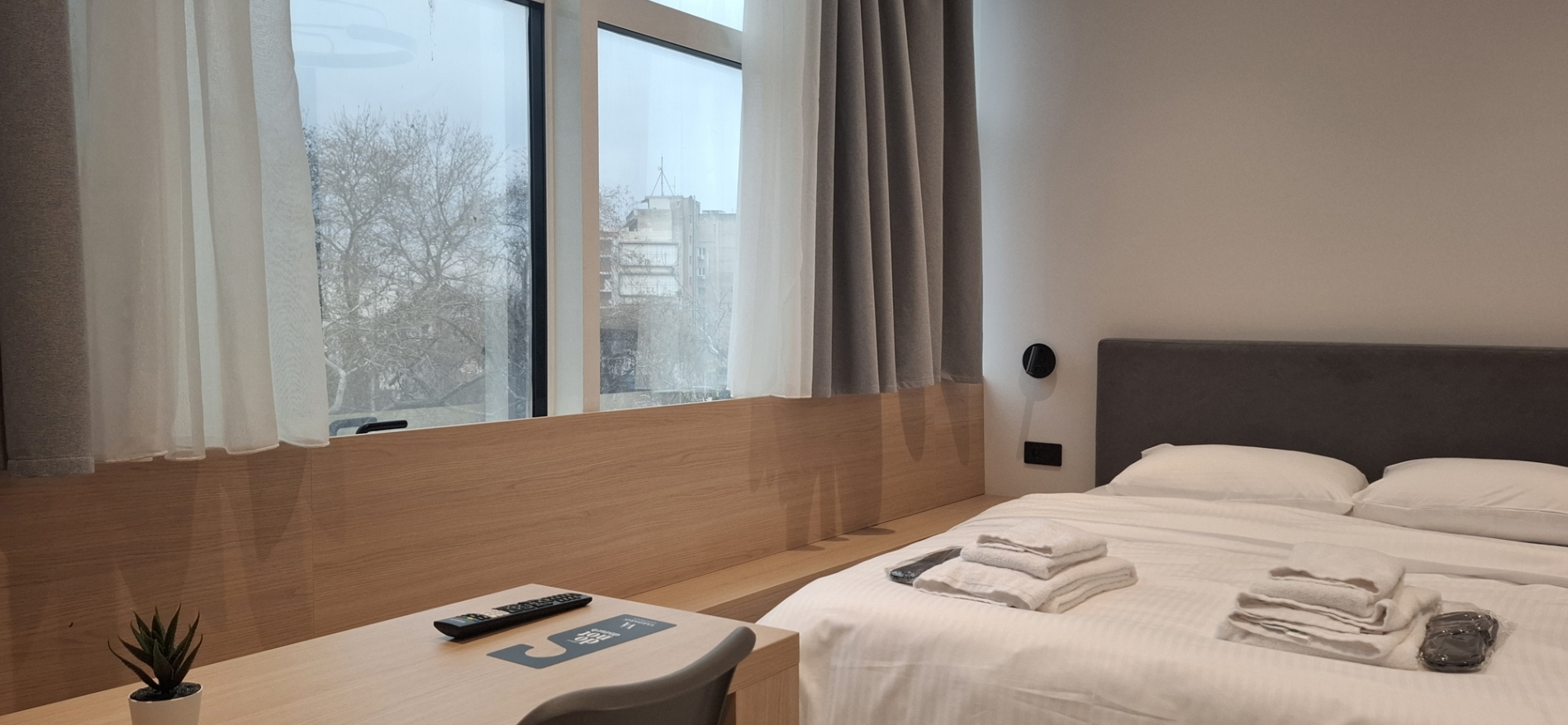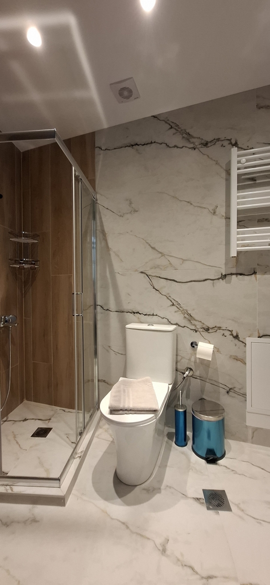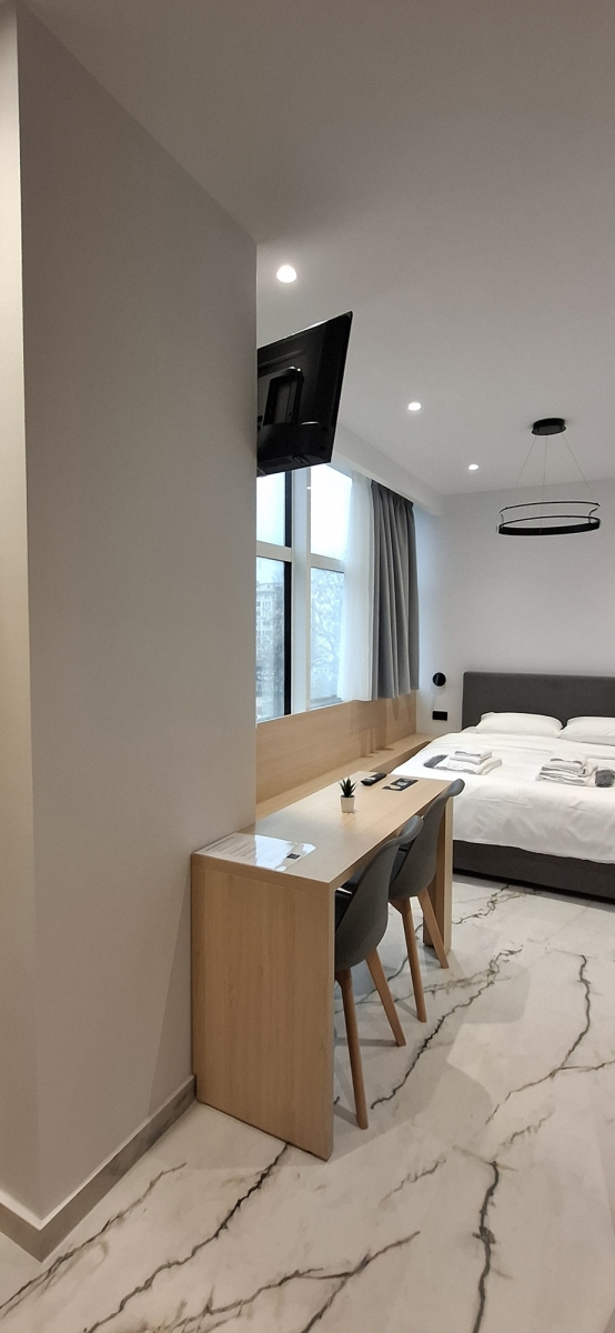 Perfect for couples or two guests, our modern studios offer a stylish and comfortable stay in the heart of the city. With contemporary design, neutral tones, and plenty of natural light, the space creates the ideal atmosphere for relaxation and rest. The studios feature a cozy double bed, a seating area, a bathroom with shower, and a fully equipped kitchen.. Equipped with high-speed Wi-Fi, air conditioning, a smart TV, and all essential amenities, you'll have everything you need for a pleasant and convenient stay. Enjoy the comfort of a private apartment with the warmth of a thoughtfully designed space — just steps away from the city’s best attractions. Living area: ca. 24sqm